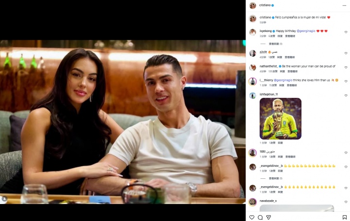 C罗写道:祝我生命中的挚爱生日快乐!